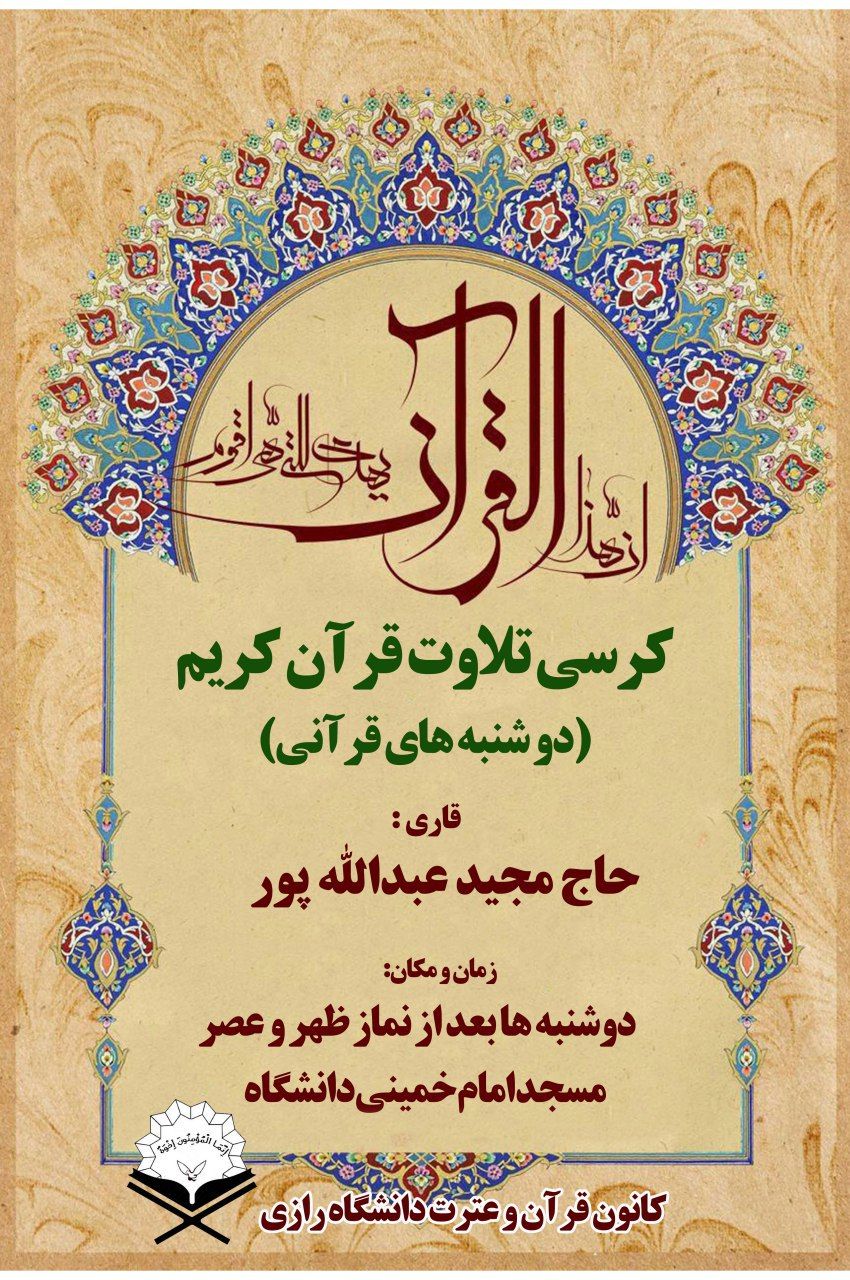 کانون قرآن و عترت دانشگاه رازی کرسی تلاوت قرآن کریم را با حضور قاریان مطرح استانی و کشوری دوشنبه های هر هفته برگزار می کند.