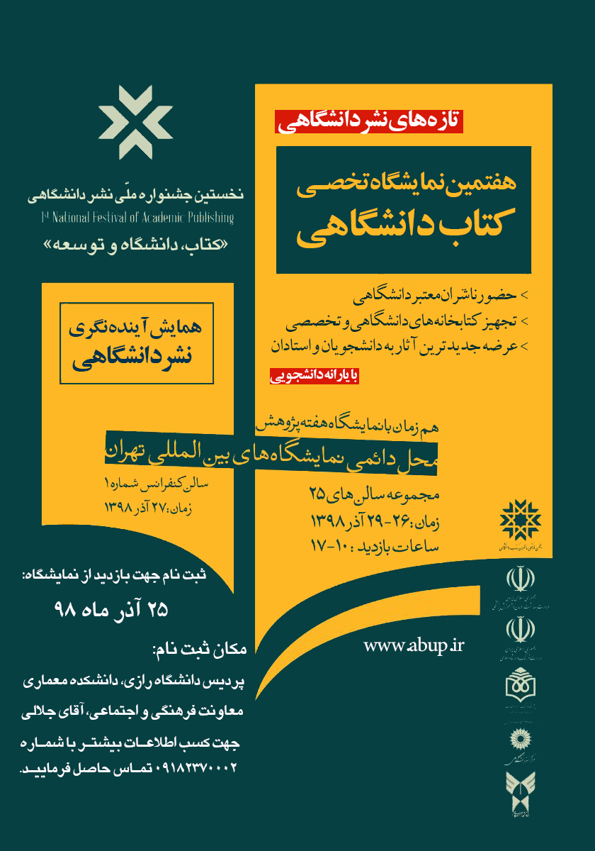 هفتمین نمایشگاه تخصصی کتاب دانشگاهی، در هفته پژوهش در آخر آذر ماه همزمان با برگزاری نمایشگاه دستآوردهای پژوهشی سازمانها و نهادهای تخصصی و دانشگاهی، جشنواره ملی نشر دانشگاهی برگزار می شود.