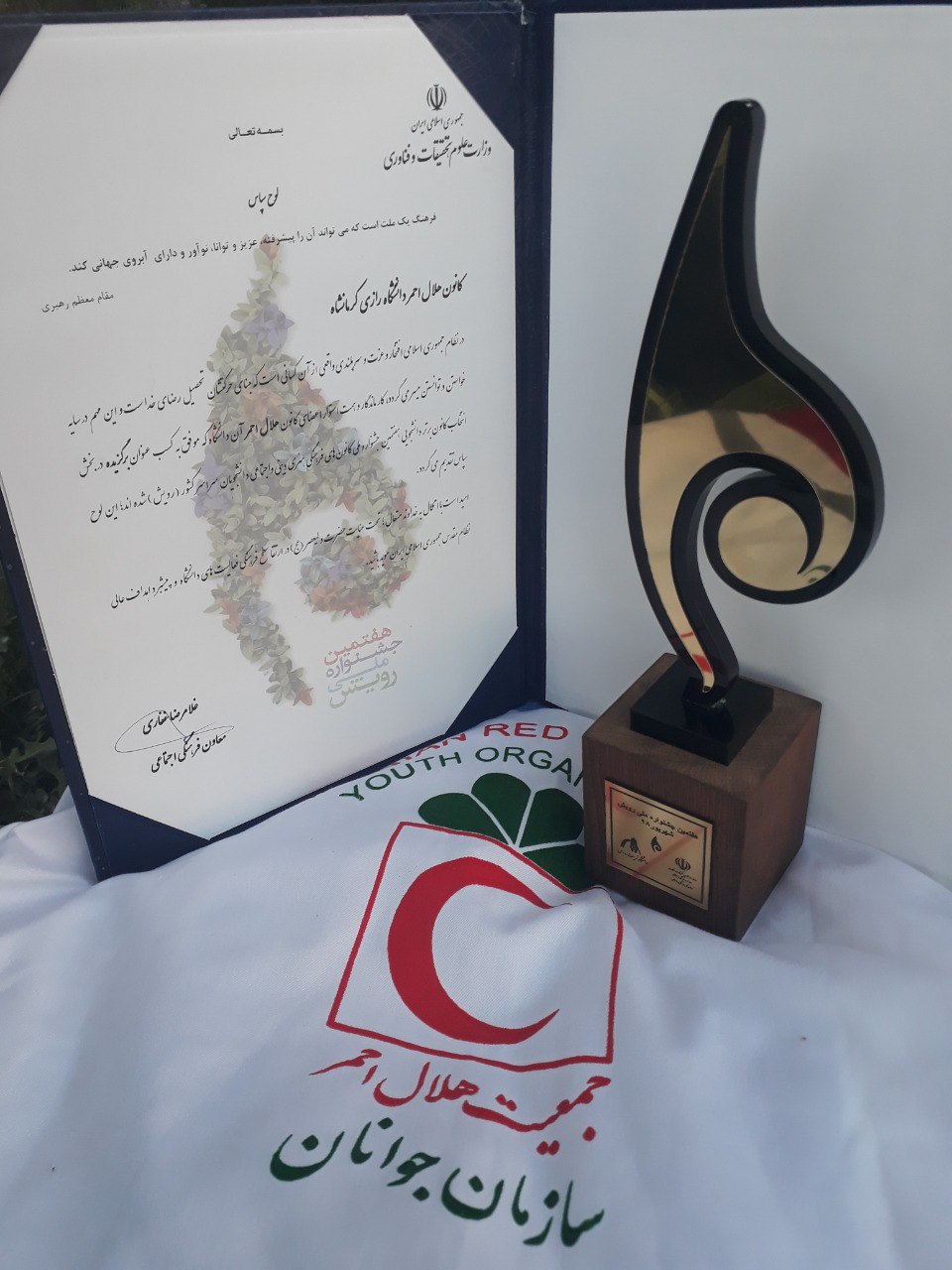 کانون هلال احمر دانشگاه رازی در هفتمین جشنواره ملّی رویش که در تاریخ 6 و 7 شهریور ماه سال جاری به میزبانی دانشگاه تربیت مدرس برگزار گردید، در حوزه امدادرسانی و خیریه به عنوان کانون اول، برگزیده شد. این موفقیت را به جامعه دانشگاهی دانشگاه رازی تبریک عرض می نماییم.