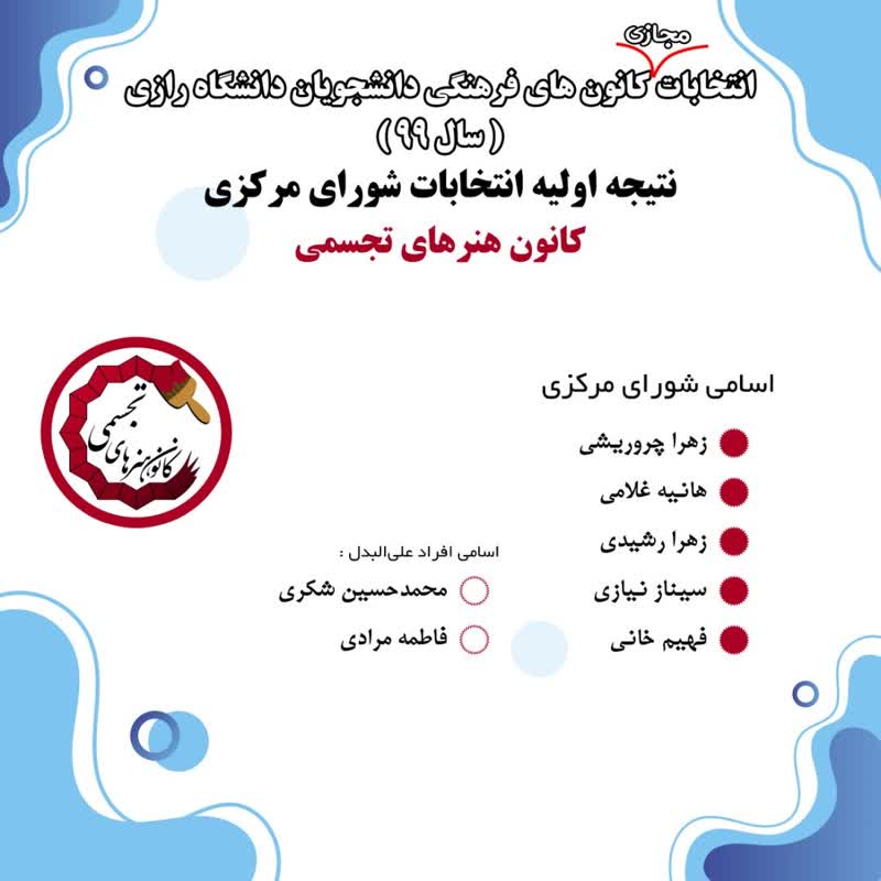 لیست اولیۀ انتخابات شورای مرکزی کانون هنرهای تجسمی - معاونت فرهنگی
