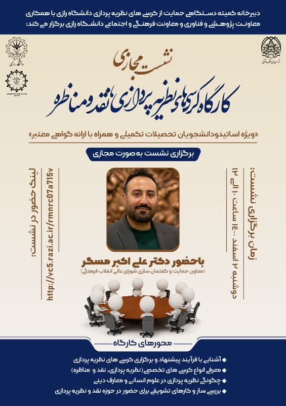 دبیرخانه کرسیهای نظریه پردازی، نو آوری، نقد و مناظره علمی معاونت پژوهش و فنآوری دانشگاه رازی با همکاری معاونت فرهنگی و اجتماعی برگزار میکند: