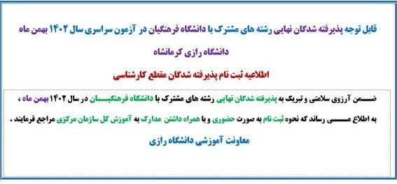 قابل توجه پذيرفته شدگان نهايي رشته هاي مشترك با دانشگاه فرهنگيان در آزمون سراسري بهمن ماه سال 1402