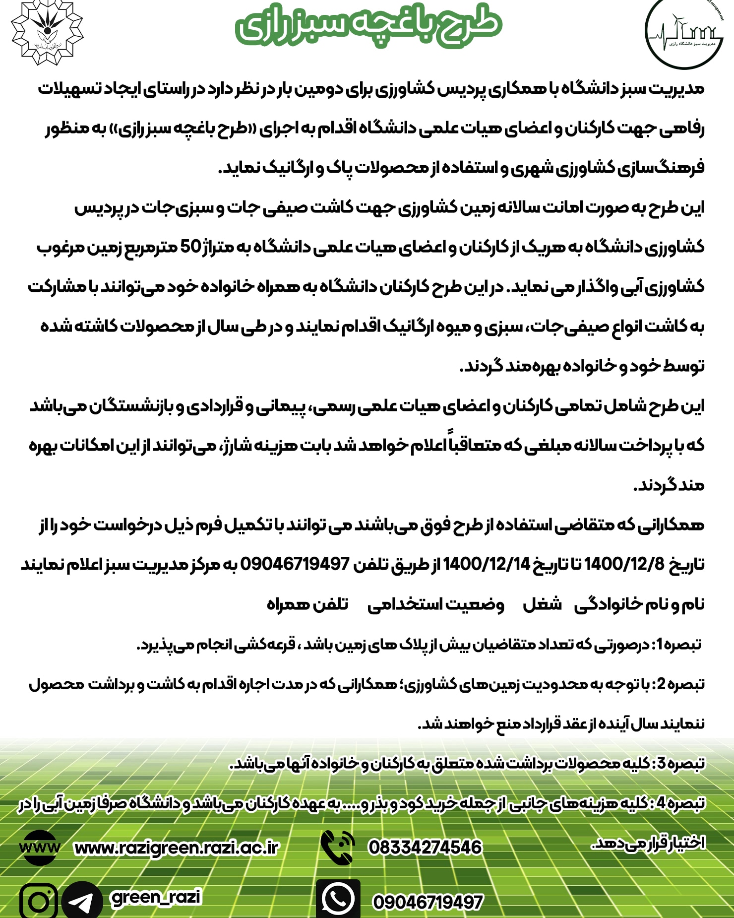 باغچه سبز دانشگاه رازی در مسیر تحقق دانشگاه سبز