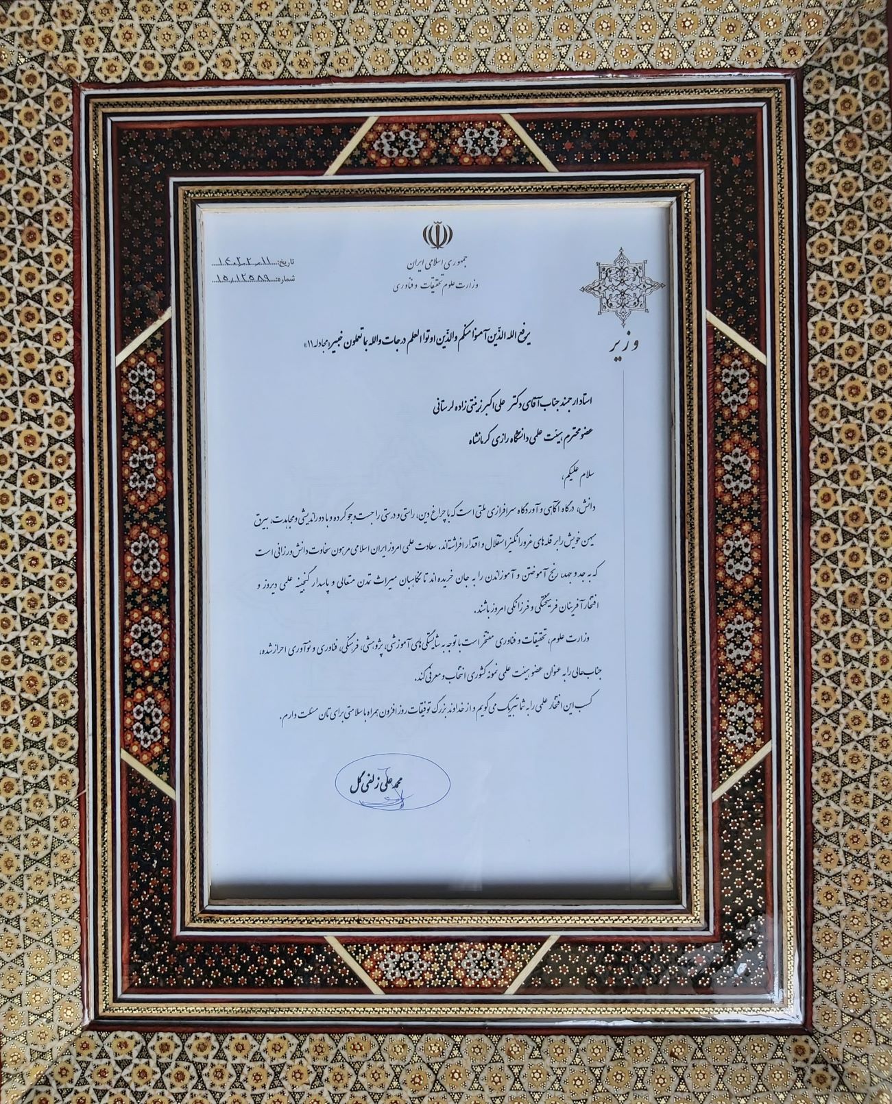 معاونت پژوهش و فناوری دانشگاه رازی، ضمن آرزوی موفقیت­های روزافزون برای جناب آقای دکتر زینتی زاده، این موفقیت را به ایشان و دانشگاهیان دانشگاه رازی تبریک عرض می‌نماید.