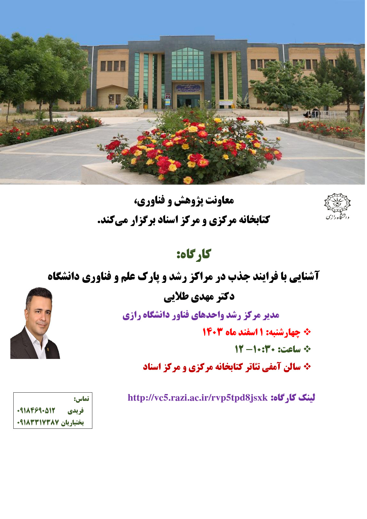 مکان: کرمانشاه، دانشگاه رازی، سالن آمفی تئاتر پرفسور شمسی پور، کتابخانه مرکزی