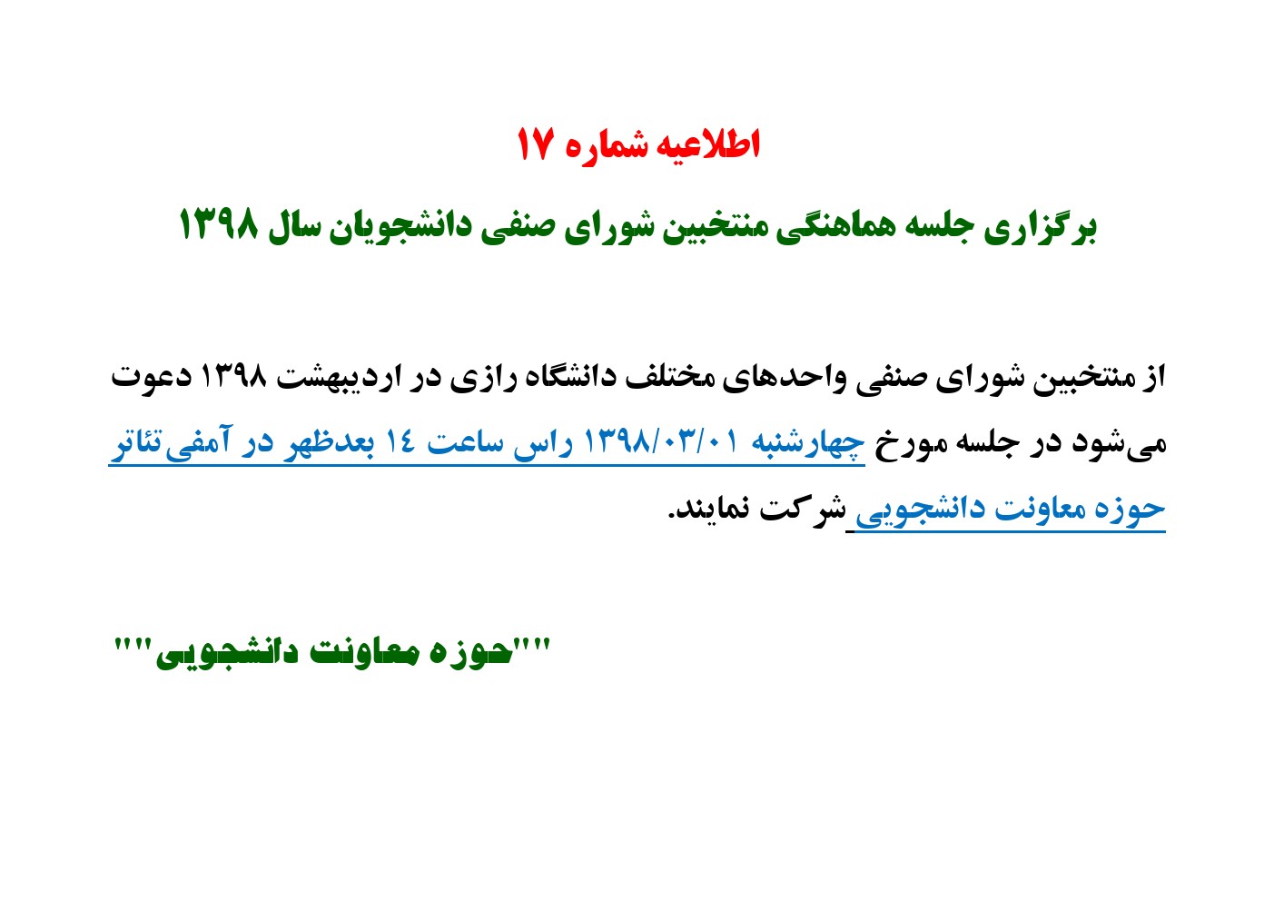اطلاعیه های انتخابات شورای صنفی - رفاهی دانشجویان سال 1404