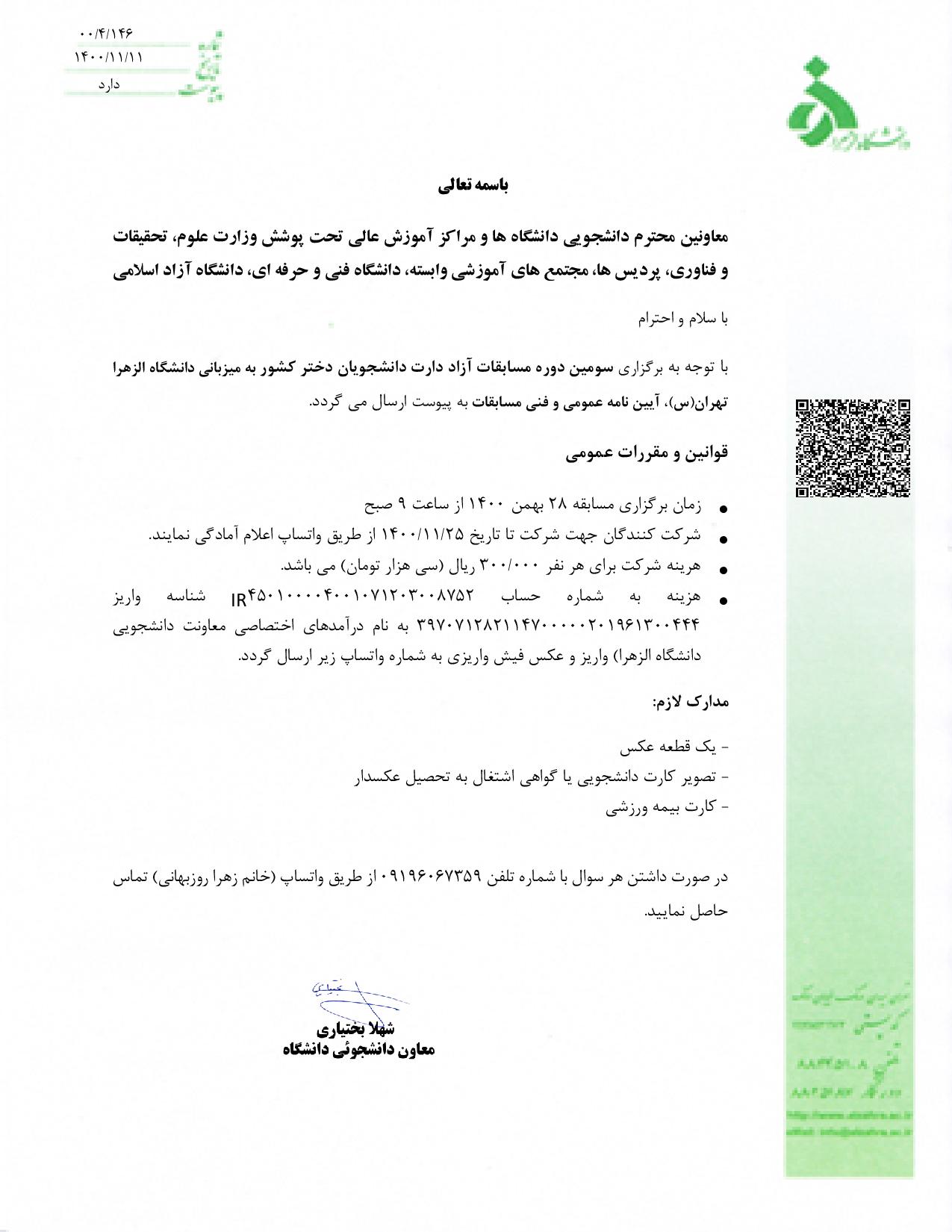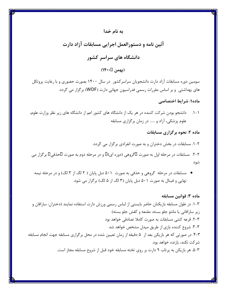 سومین دوره مسابقات آزاد دارت دانشجویان دختر کشور به میزبانی دانشگاه الزهرا (س) تهران