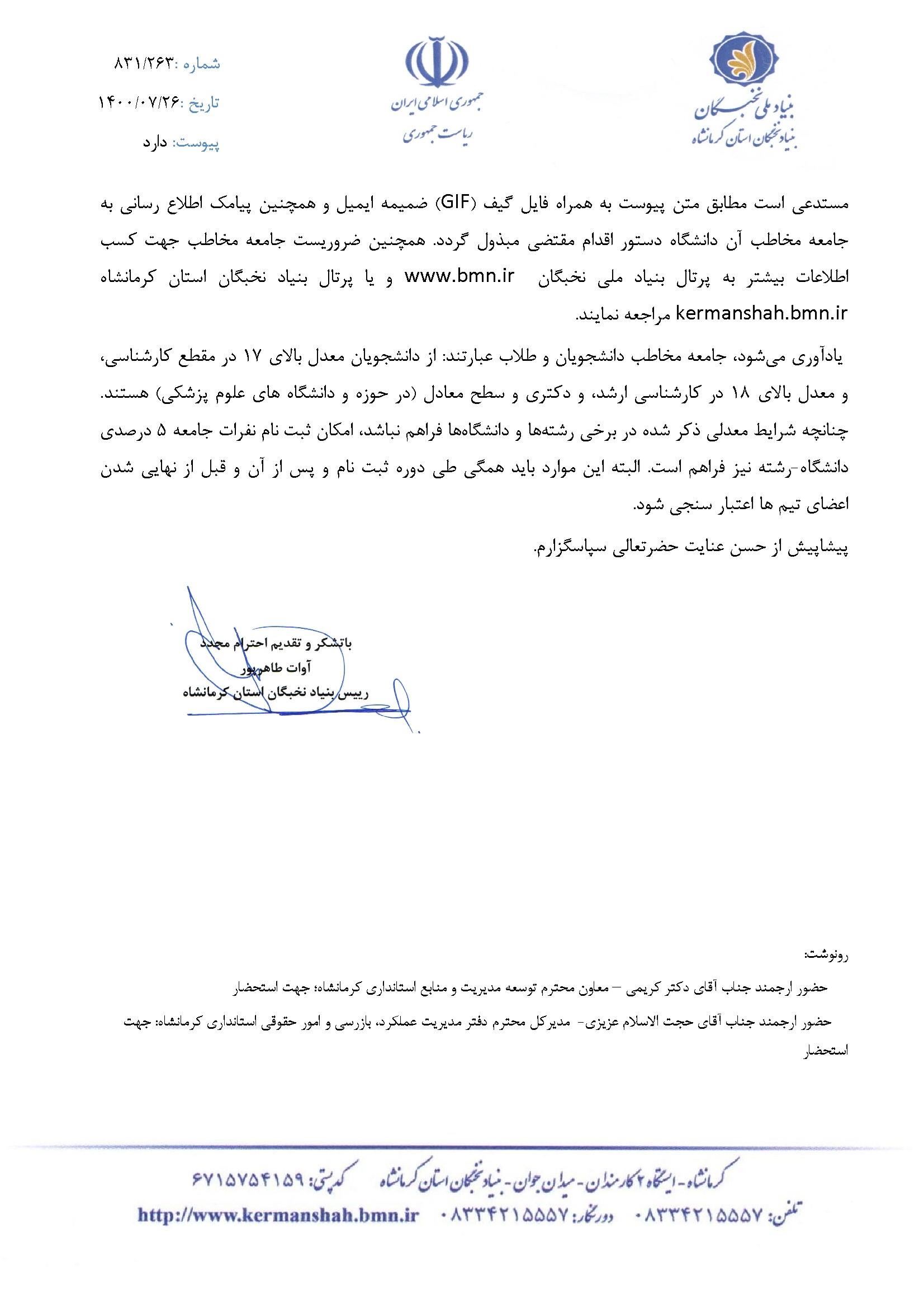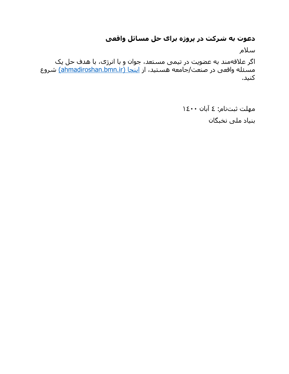 فراخوان ثبت نام در طرح شهید احمدی روشن (دوره ششم)
