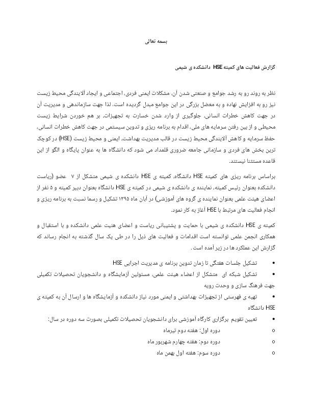 گزارش فعالیت های کمیته HSE دانشکده شیمی - دانشکده شیمی