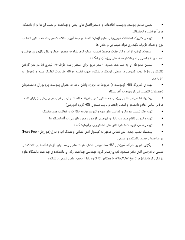 گزارش فعالیت های کمیته HSE دانشکده شیمی