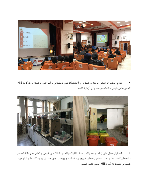 گزارش فعالت های کمیته HSE دانشکده شیمی