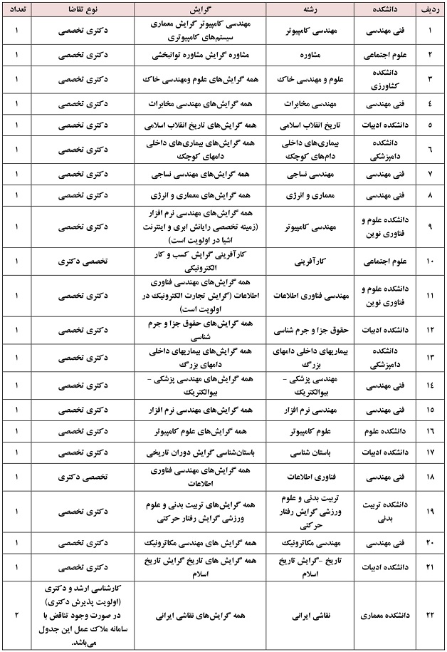 به گزارش دبیرخانه جذب اعضای هیئت علمی دانشگاه رازی، در این فراخوان دانشگاه در رشتههای زیر عضو هیئت علمی میپذیرد. متقاضیان میتوانند با مراجعه به وبسایت مرکز جذب اعضای هیئت علمی به آدرس https://applicant.markazjazb.ir اقدام نمایند. در صورت نیاز به اطلاعات بیشتر متقاضیان می توانند از طریق شماره ۰۸۳۳۴۲۸۳۹۱۹ با دبیرخانه جذب دانشگاه تماس بگیرند.