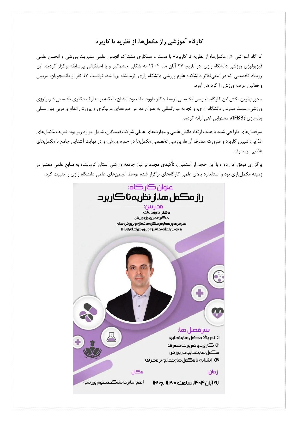 کارگاه آموزشی راز مکمل ها از نظریه تا کاربرد