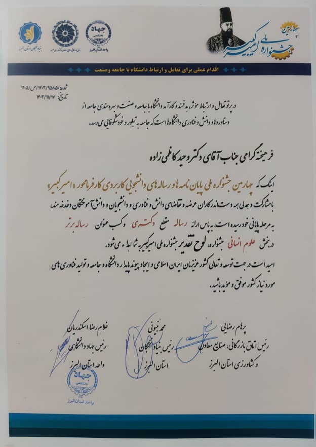 کسب موفقیت دانشجوی دکتری دانشکده علوم ورزشی دانشگاه رازی، رساله برتر جشنواره امیرکبیر