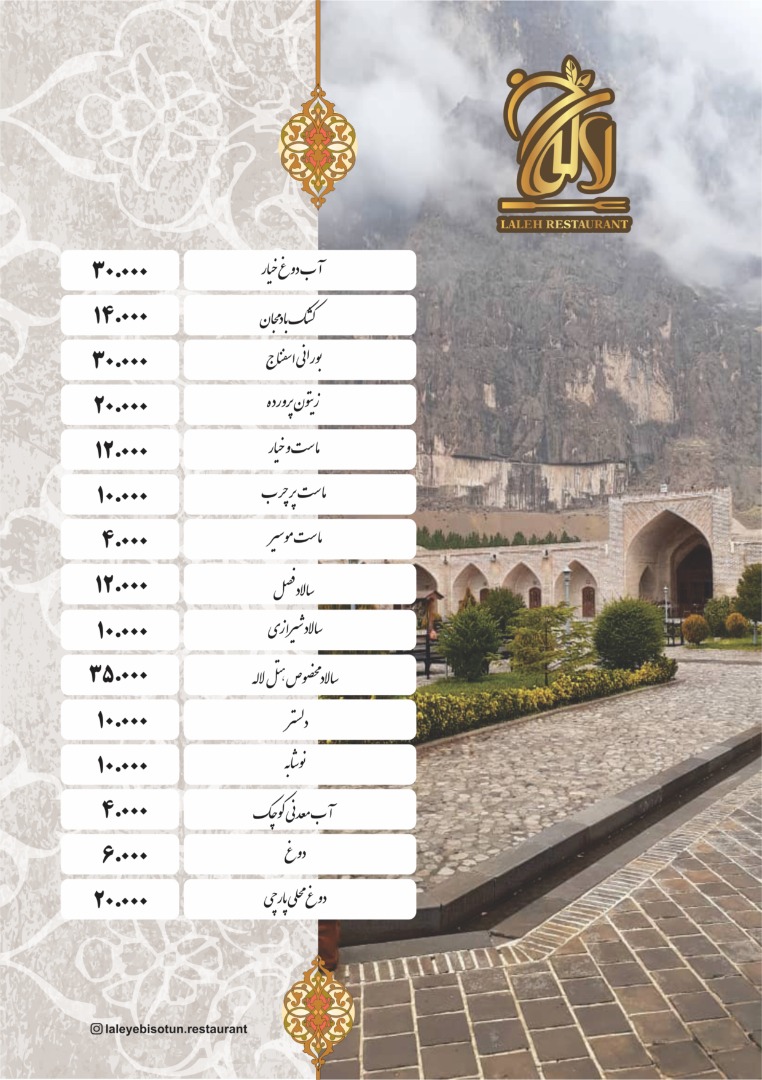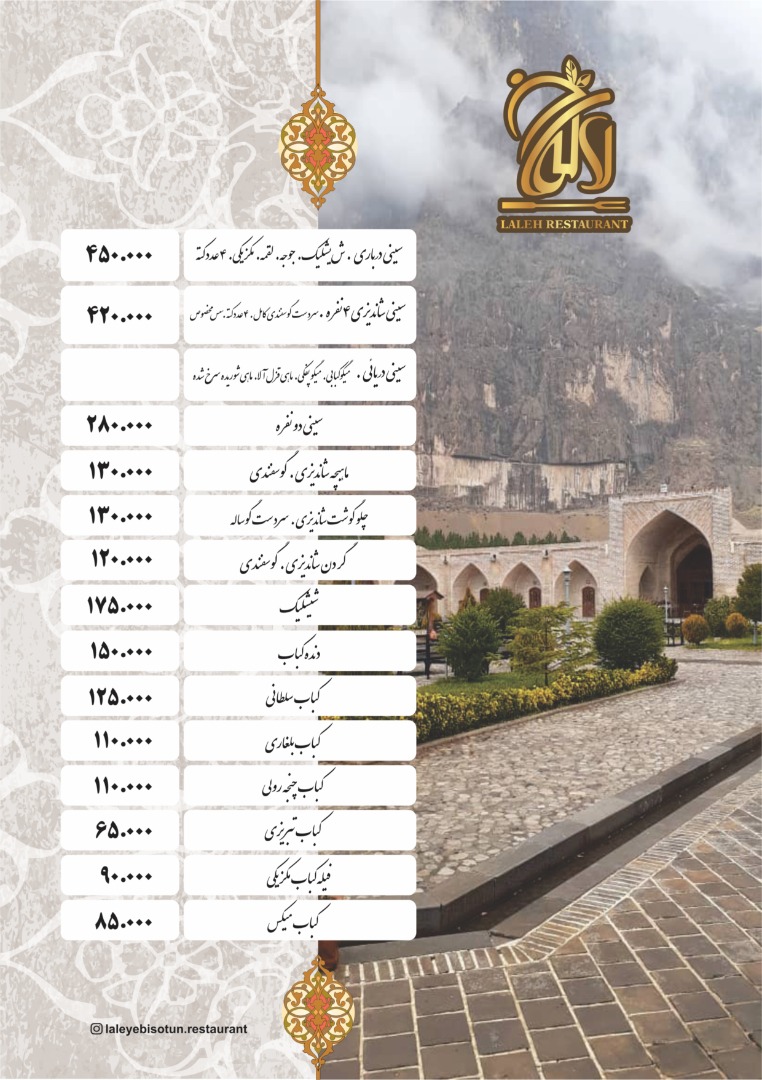 - رستوران هتل لاله بیستون : صرفا مراجعه حضوری: 09187176870