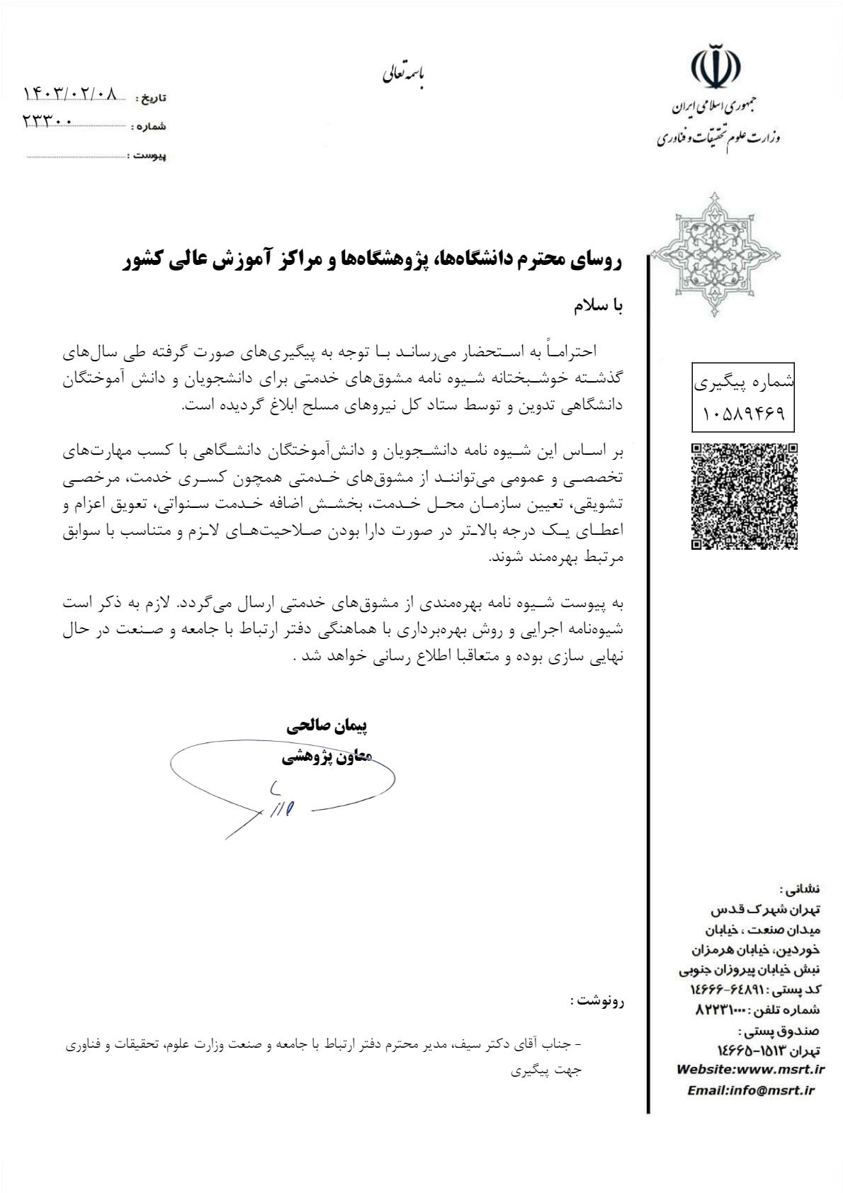 کانالهای ارتباطی با دفتر ارتباط با جامعه و صنعت وزارت علوم، تحقیقات و فناوری
