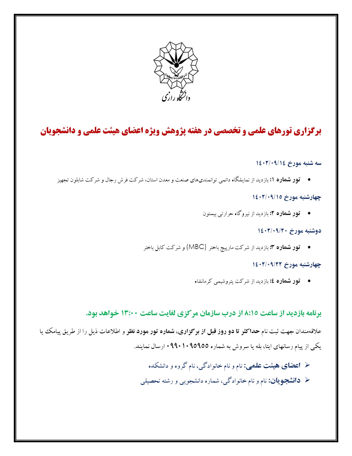 اطلاعیه برنامه زمانی مصاحبه متقاضیان بورسیه صنعتی دانشگاه رازی