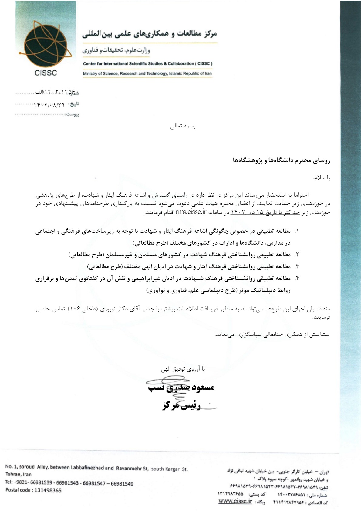 فراخوان دریافت طرحنامههای پژوهشی - فرهنگ ایثار و شهادت
