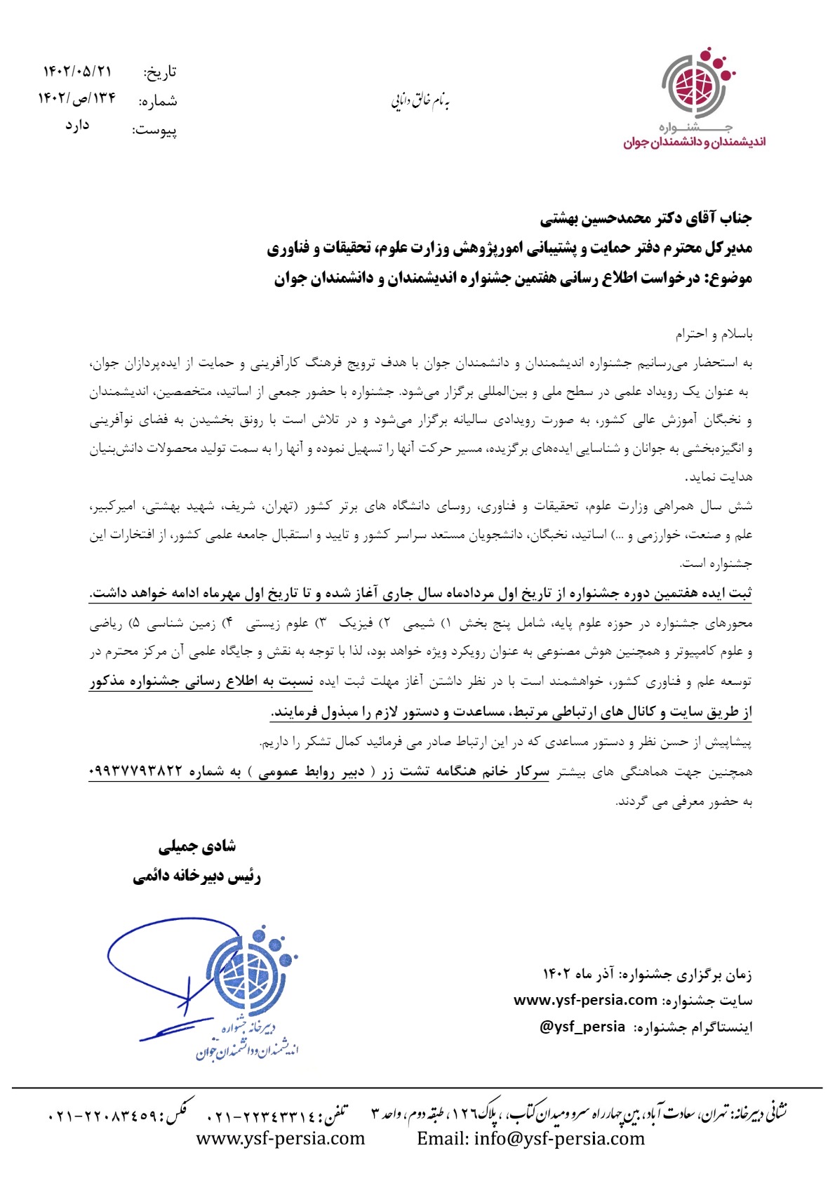 فراخوان هفتمین جشنواره اندیشمندان و دانشمندان جوان - آذرماه 1402