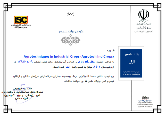 کسب رتبه "الف" نشریه "فنون زراعی در گیاهان صنعتی" دانشگاه رازی