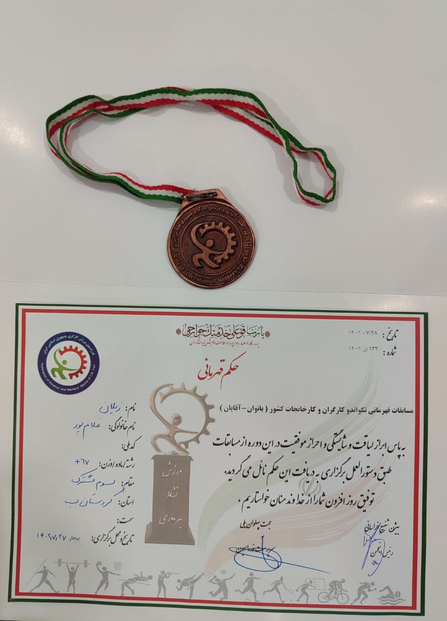 کسب مقام سوم کارگران کشور توسط دانشجوی دانشگاه رازی - مدیریت تربیت بدنی