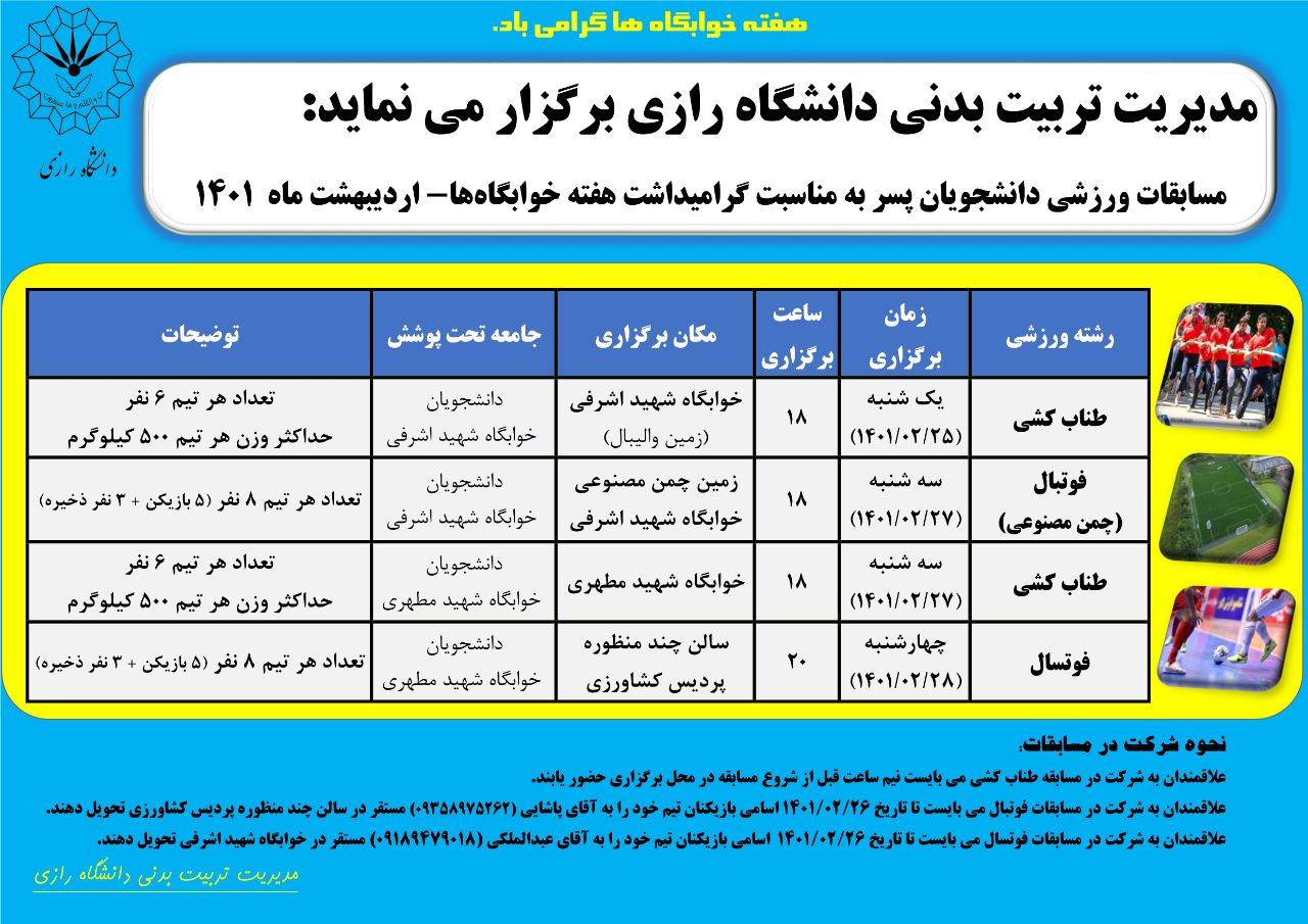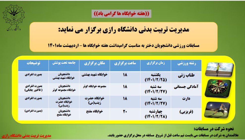 مسابقات ورزشی دانشجویان به مناسبت گرامیداشت هفته خوابگاه ها