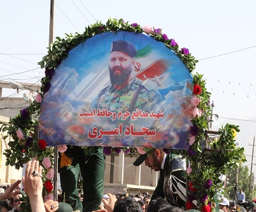 پیکر مطهر شهید "سجاد امیری"، بسیجی حافظ امنیت با حضور پرشور مردم استان تشییع و در کنار همرزمان شهیدش به خاک سپرده شد.