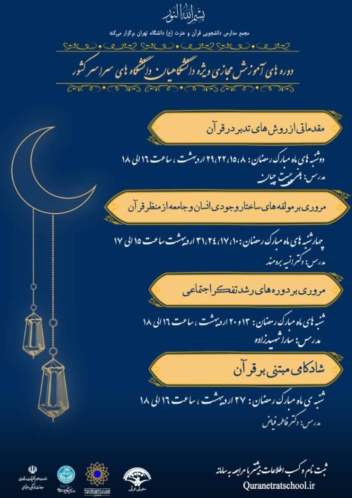 20 04 2020 1082 «برنامه جامع تدبر در قرآن» در ماه مبارک رمضان معاونت فرهنگی و اجتماعی وزارت علوم، تحقیقات و فناوری با همکاری مجمع مدارس دانشجویی قرآن و عترت دانشگاه تهران و اداره کل فرهنگی و...