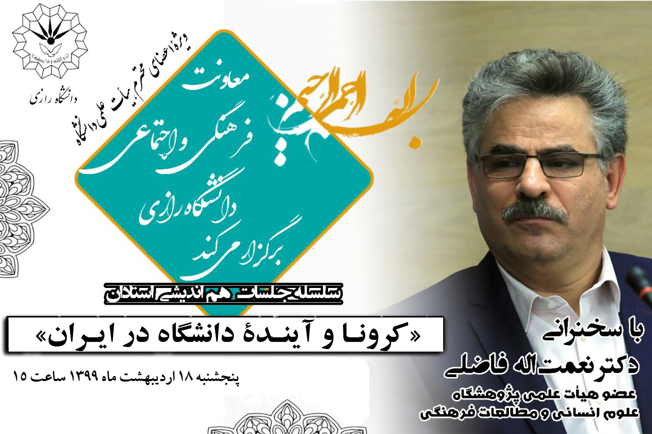 06 05 2020 881 برگزاری نشست «کرونا و آیندۀ دانشگاه در ایران» ویژه اعضای هیأت علمی دانشگاه رازی از سلسله نشست های هم اندیشی استادان، نشست «کرونا و آیندۀ دانشگاه در ایران» با سخنرانی دکتر نعمت...