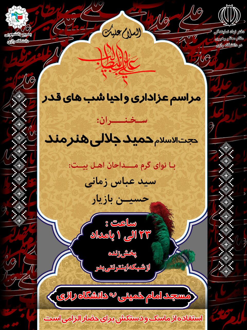 12 05 2020 900 برگزاری مراسم عزاداری و احیا شب های قدر در مسجد امام خمینی(ره) دانشگاه رازی بسیج دانشجویی دانشگاه رازی مراسم عزاداری و احیا شب های قدر را با سخنرانی حجت الاسلام حمید جلالی هنرمند و...