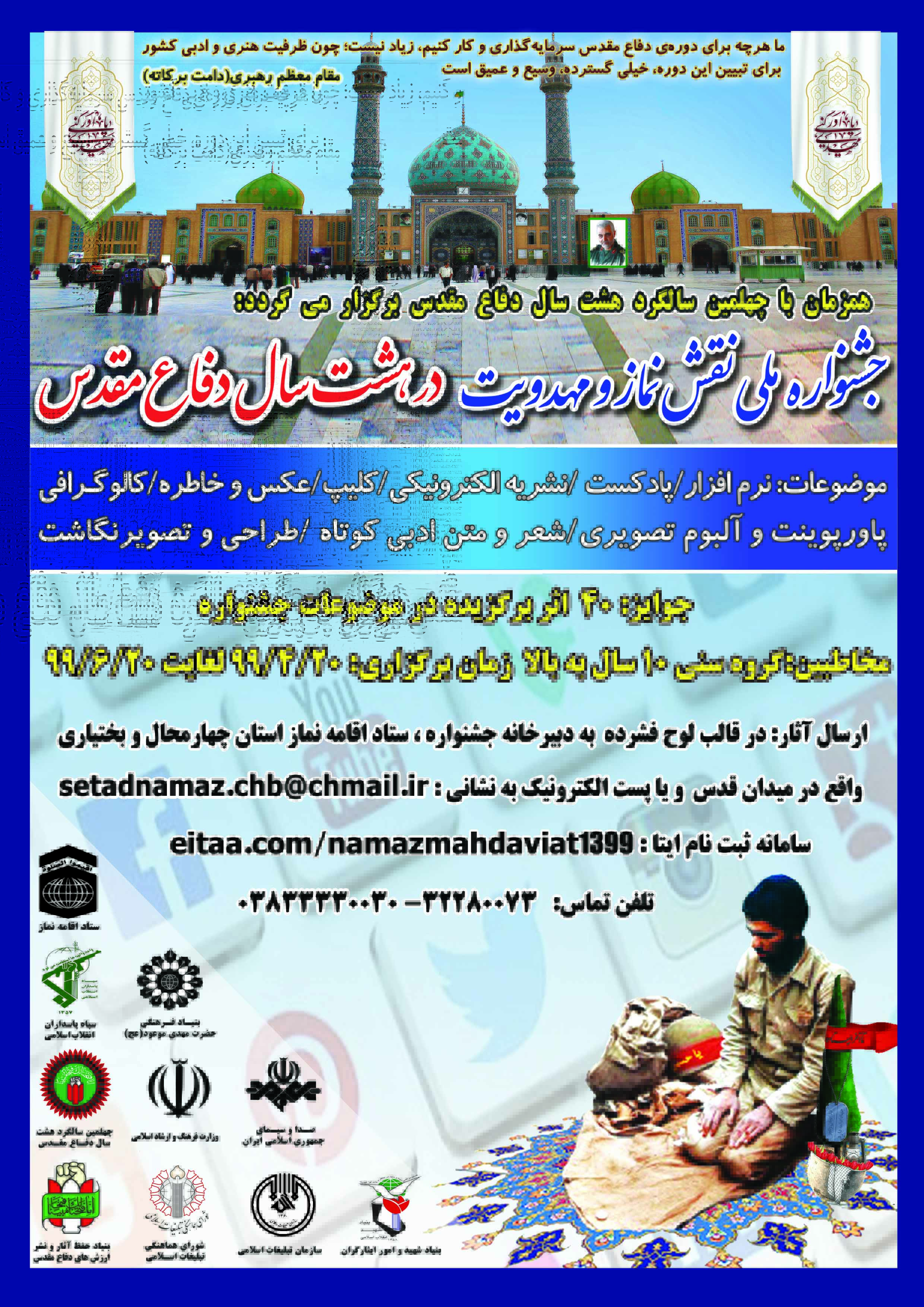 11 08 2020 1149 جشنواره ملی نقش نماز و مهدویت در هشت سال دفاع مقدس 1399/6/20 همزمان با چهلمین سالگرد هشت سال دفاع مقدس، جشنواره ملی نقش نماز و مهدویت در هشت سال دفاع مقدس به میزبانی استان چهارمحال...