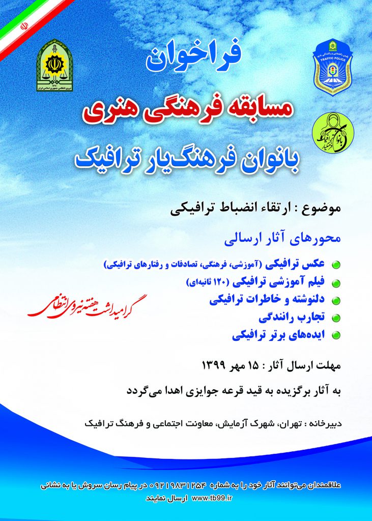 07 09 2020 852 برگزاری مسابقه فرهنگی هنری بانوان فرهنگیار ترافیک 99.7.15 به مناسبت گرامیداشت هفته ناجا مسابقه فرهنگی هنری بانوان فرهنگیار ترافیک با موضوع انضباط ترافیکی برگزار خواهد شد. محورهای...