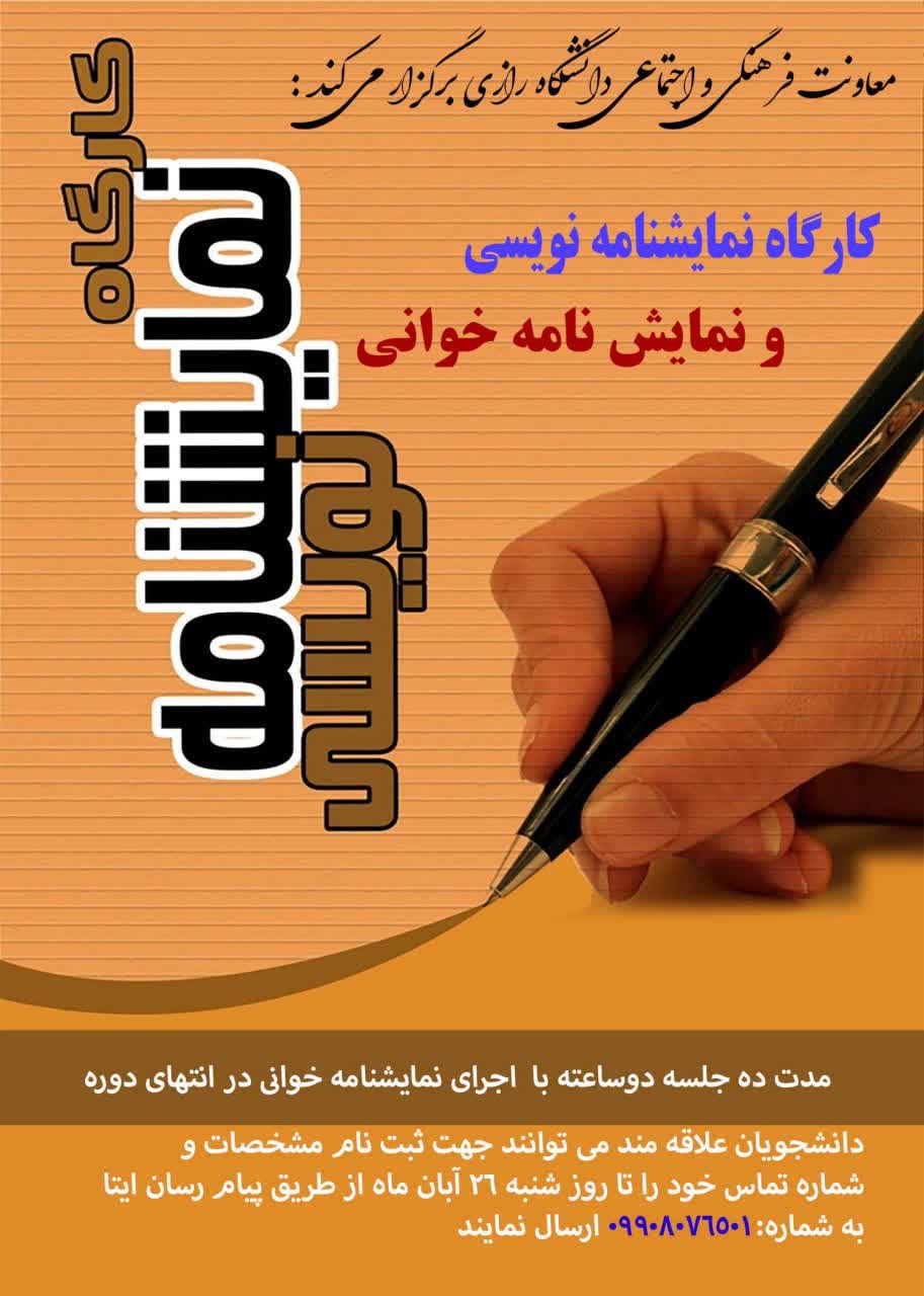 370 کارگاه آموزشی «نمایشنامهنویسی و نمایشنامهخوانی» برگزاری ۱۰ جلسه ۲ ساعته و اجرای نمایشنامه خوانی در پایان دوره مهلت ثبتنام: تا ۲۶ آبانماه ۱۴۰۳ علاقمندان میتوانند جهت ثبتنام مشخصات و...