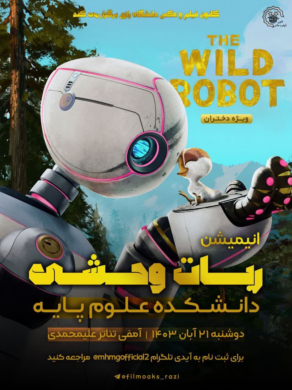 246 کانون فیلم و عکس دانشگاه رازی برگزار میکند: اکران انیمیشن «رباتِ وحشی» ویژۀ دانشجویان دختر دانشگاه رازی رایگان زمان اکران: دوشنبه ۲۱ آبان ماه ۱۴۰۳ ساعت ۱۰ تا ۱۲ مکان اکران: دانشکدۀ علوم...