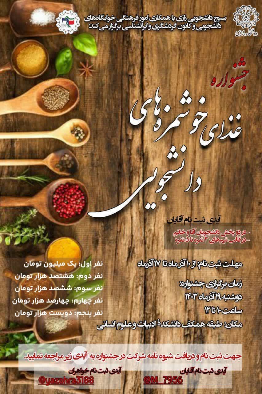 712 جشنواره غذای خوشمزههای دانشجویی یه خبرایی تو راهه در دانشگاه رازی جشنواره ای مخصوص دانشجویان ایرانی و عراقی دانشگاه رازی به مناسبت فرارسیدن روز دانشجو بسیج دانشجویی دانشگاه رازی با همکاری...