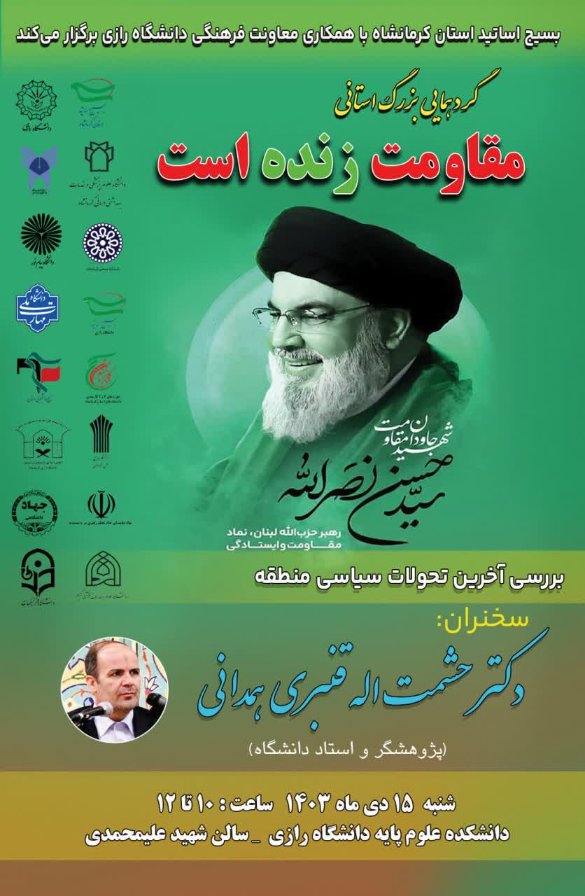 744 بسیج اساتید استان کرمانشاه باهمکاری معاونت فرهنگی و اجتماعی دانشگاه رازی برگزار میکند: گردهمایی بزرگ استانی باموضوع «بررسی آخرین تحولات سیاسی منطقه» گردهمایی بزرگ استانی مقاومت زنده...