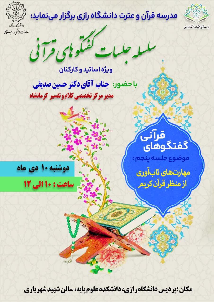 752 نشست هماندیشی باموضوع «سبک زندگی قرآنی (مهارتهای تابآوری از منظر قرآن کریم)» معاونت فرهنگی و اجتماعی دانشگاه رازی با همکاری ادارۀ طرح و برنامه، نشست هماندیشی باموضوع «سبک زندگی قرآنی...