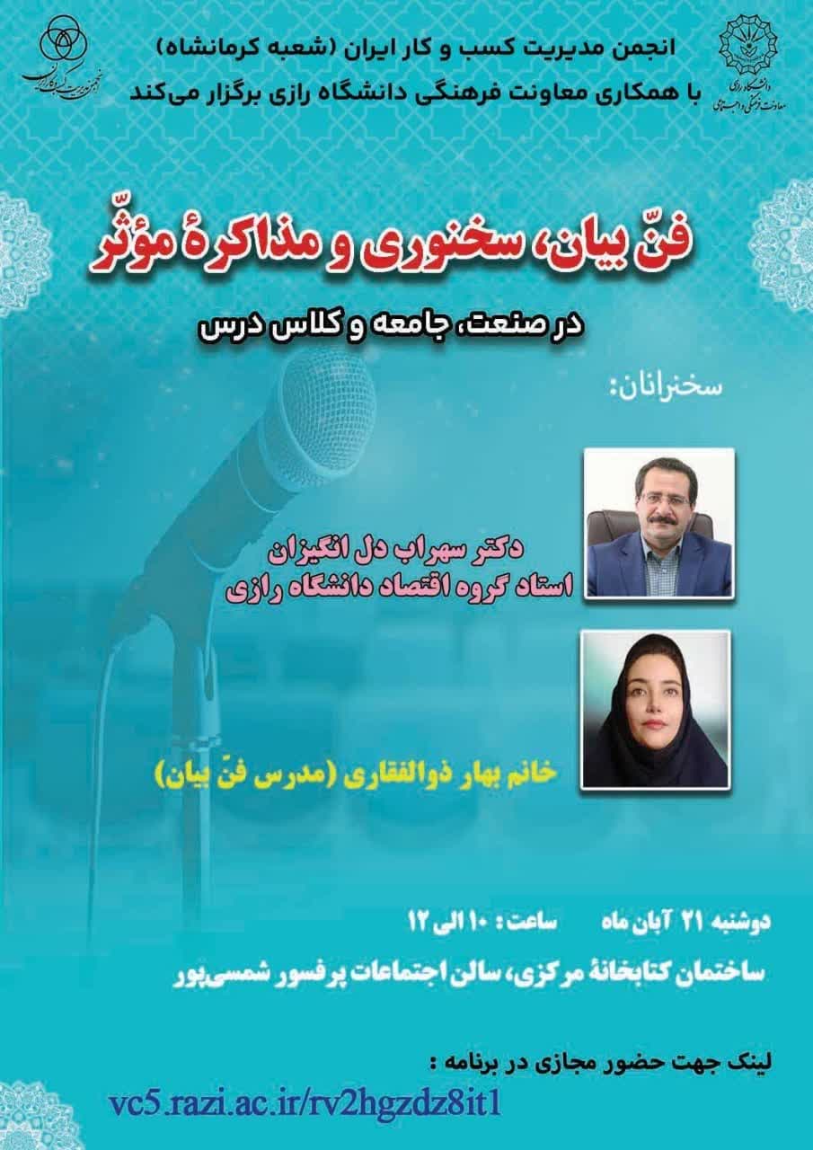 303 کارگاه آموزشی «فنّ بیان، سخنوری و مذاکرۀ مؤثّر؛ در صنعت، جامعه و کلاس درس» با ارائۀ: دکتر سهراب دلانگیزان (استاد گروه اقتصاد دانشگاه رازی) خانم بهار ذوالفقاری (مدرس فنّ بیان) مخاطبان نشست:...