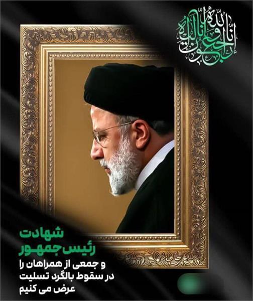 96710 إِنَّا لِلَّهِ وَإِنَّا إِلَیْهِ رَاجِعُونَ رئیس جمهور محبوب ملت در راه خدمت به مردم به شهادت رسید مِنَ المُؤمِنينَ رِجالٌ صَدَقوا ما عاهَدُوا اللَّهَ عَلَيهِ ۖ فَمِنهُم مَن قَضىٰ نَحبَهُ...