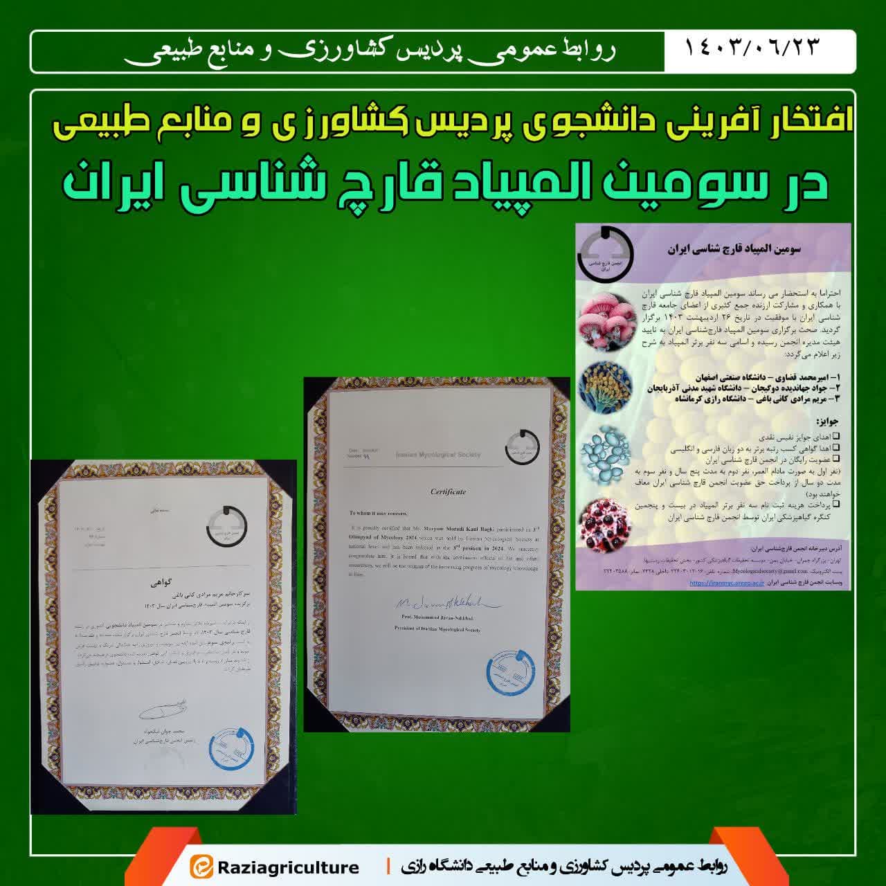 59100 کسب افتخار توسط دانشجوی پردیس کشاورزی و منابع طبیعی در المپیاد ملی قارچ شناسی ایران به گزارش روابط عمومی پردیس کشاورزی و منابع طبیعی خانم مریم مرادی دانشجوی رشته گیاهپزشکی این پردیس با حضور...