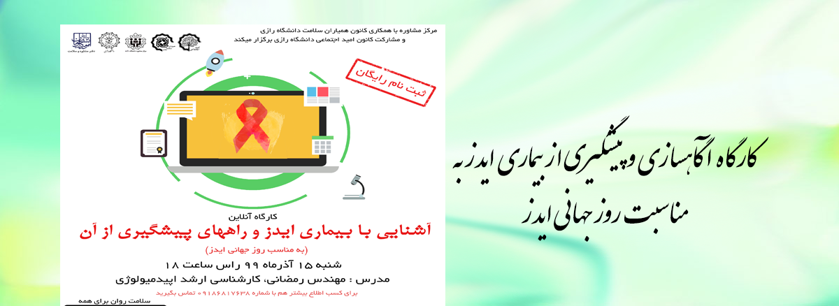 755 کارگاه آگاهسازی و پیشگیری از بیماری ایدز به مناسبت روز جهانی ایدز لینک شرکت در کارگاه: https://www.skyroom.online/ch/razi1399/razi99 شناسه : 952664