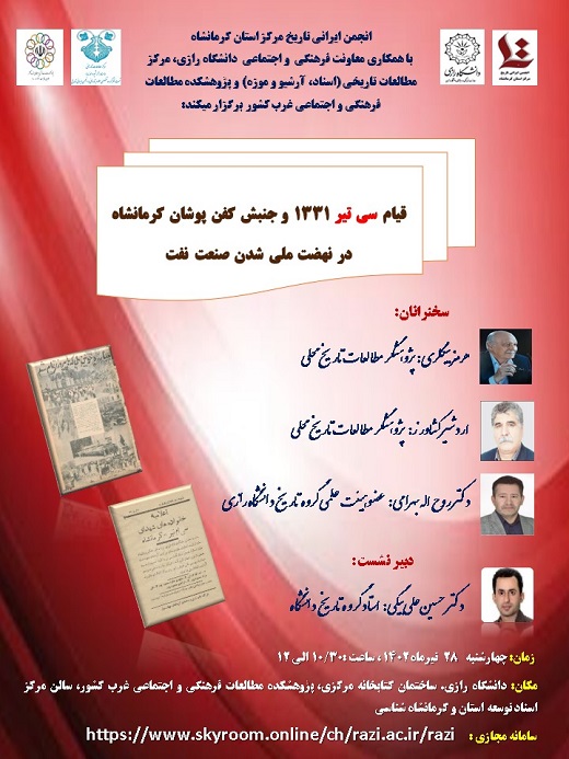 1794 دومین برنامه از سلسله نشست های حرفه مورخان « مورخ، خلاقیت و کار آفرینی » انجمن ایرانی تاریخ با همکاری معاونت فرهنگی و اجتماعی دانشگاه رازی، مرکز اسناد آرشیو و موزه دانشگاه، اتحادیه انجمن های...