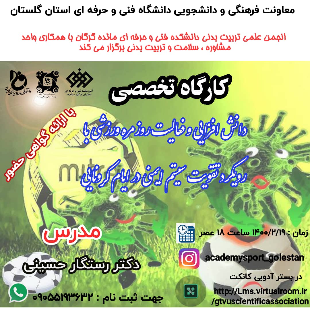 برگزاری کارگاه تخصصی دانش افزایی و فعالیت های روزمره ورزشی با رویکرد تقویت سیستم ایمنی در ایام کرونایی