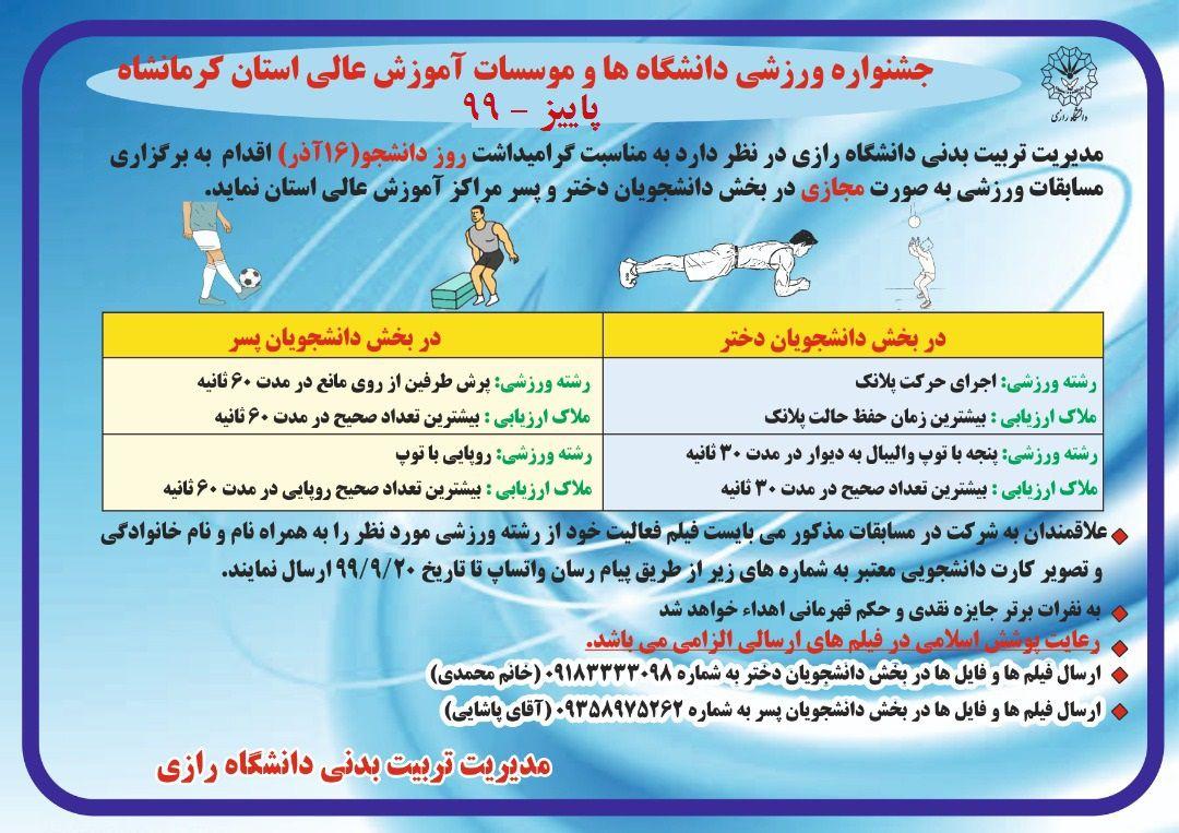 مدیریت تربیت بدنی دانشگاه رازی به مناسبت گرامیداشت روز دانشجو برگزار می نماید!