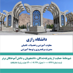 3126 اعلام نتایج پذیرش بدون آزمون استعدادهای درخشان مقطع کارشناسی ارشد سال 1403 نتایج پذیرش بدون آزمون استعدادهای درخشان مقطع کارشناسی ارشد سال 1403 در دانشگاه رازی اعلام شد. برای مشاهده جزئیات...