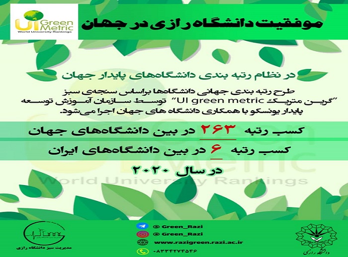 بر اساس نتایج گزارش شده گرین متریک، دانشگاه رازی رتبه 263 را در بین ...